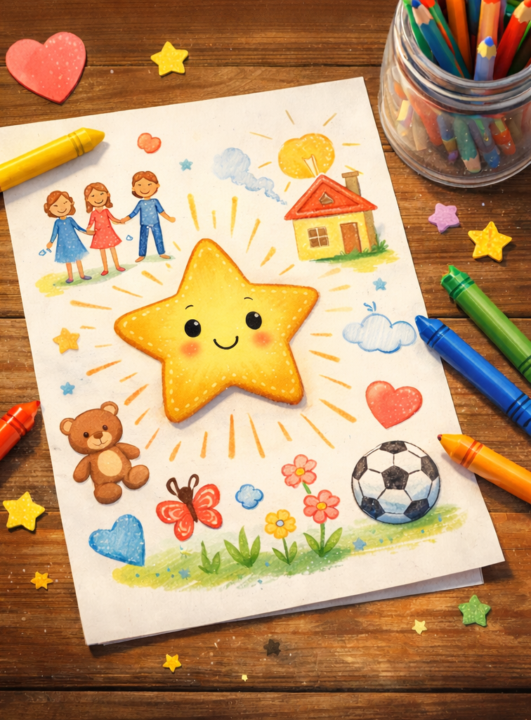 Ova jednostavna i kreativna igra pomaže djetetu da se izrazi, prepozna svoje osjećaje i osjeti vlastitu vrijednost. Igra je idealna za zajedničko, mirno vrijeme djeteta i roditelja.